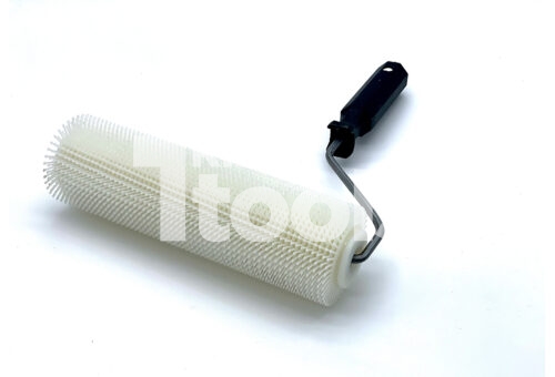 Dopo la stesura del prodotto, quando è ancora fresco, è essenziale l’impiego di rulli frangibolle per liberare l’aria inglobata durante la miscelazione. Ne esistono di diversa tipologia (con aghi in metallo o in nylon), di diverse altezze, con aghi di differente lunghezza per rispondere a tutte le esigenze.